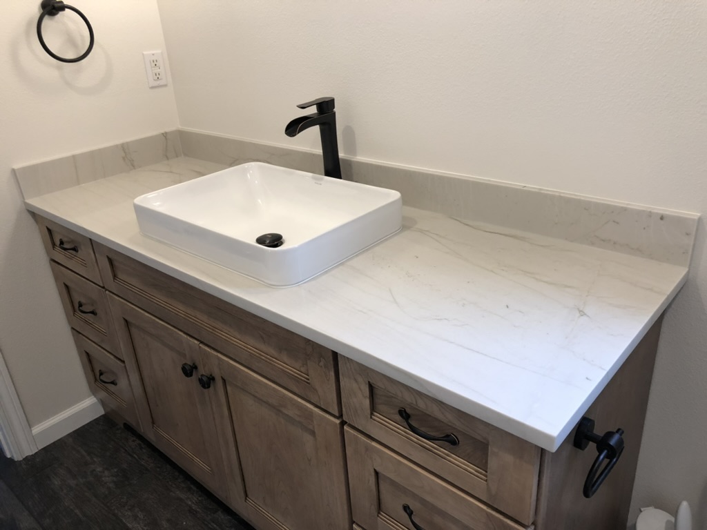 We recently had Kitchen and More remodel our kitchen and bathroom, and we are happy with the outcome! The new cabinets and countertops look great! And the flooring tied everything together nicely. The team was professional and made the entire process stress free. We will definitely be using them for future projects!
